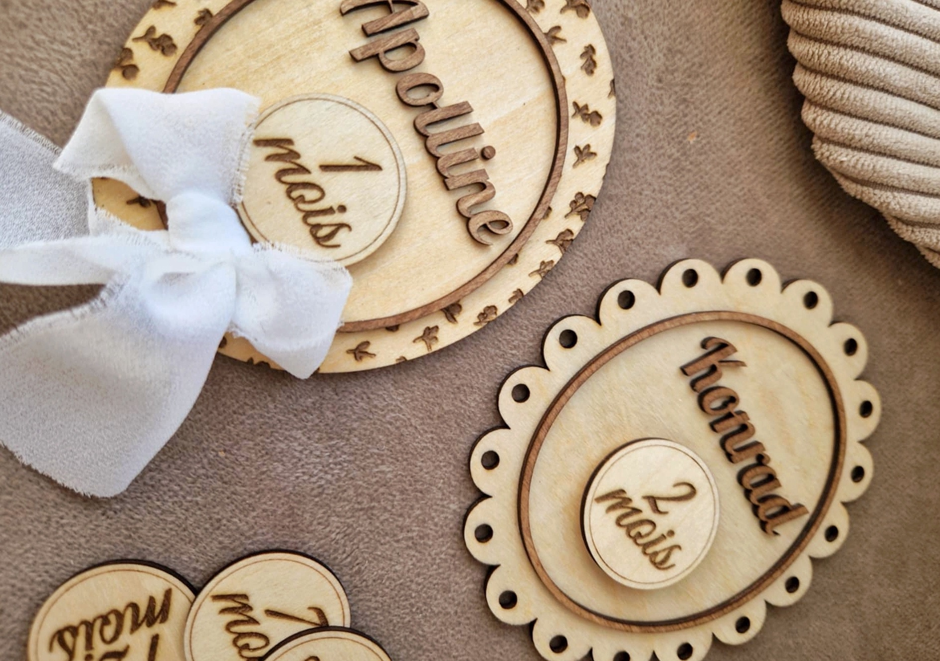 Cet ensemble unique vous permet de créer des souvenirs inoubliables et de suivre la croissance de votre enfant de mois en mois. Conçu avec soin, il allie la beauté du bois naturel à la praticité pour des photos à la fois douces et authentiques.