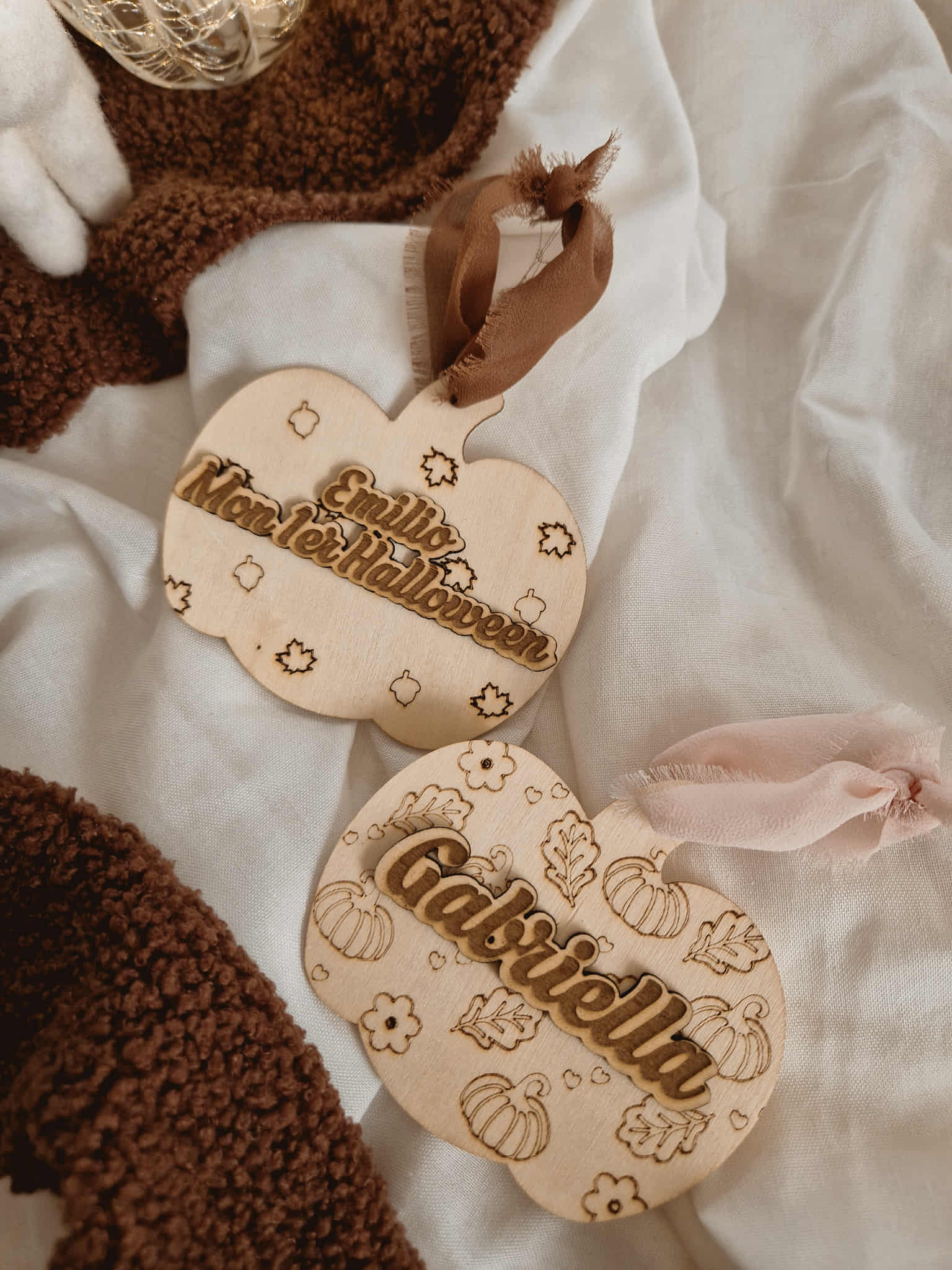 Ajoutez une touche unique et festive à Halloween avec ces jolies citrouilles en bois personnalisées. Gravées avec soin et ornées d’un ruban coloré, elles sont idéales pour :